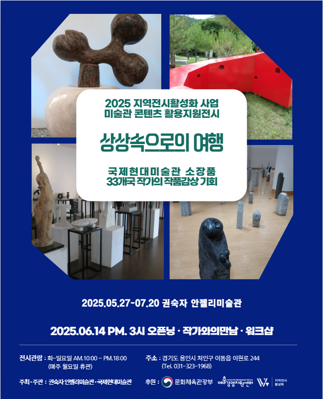 문화체육관광부와 (재)예술경영지원센터가 주최 및 주관하는 『2025년 지역전시 활성화 공모사업』의 ‘미술관 콘텐츠 활용 지역 전시’ 부문에 선정된 국제현대미술관의 ⌜상상 속으로의 여행⌟전시가 오는 5월 27일부터 7월 20일까지 권숙자 안젤리미술관에서 개최된다.