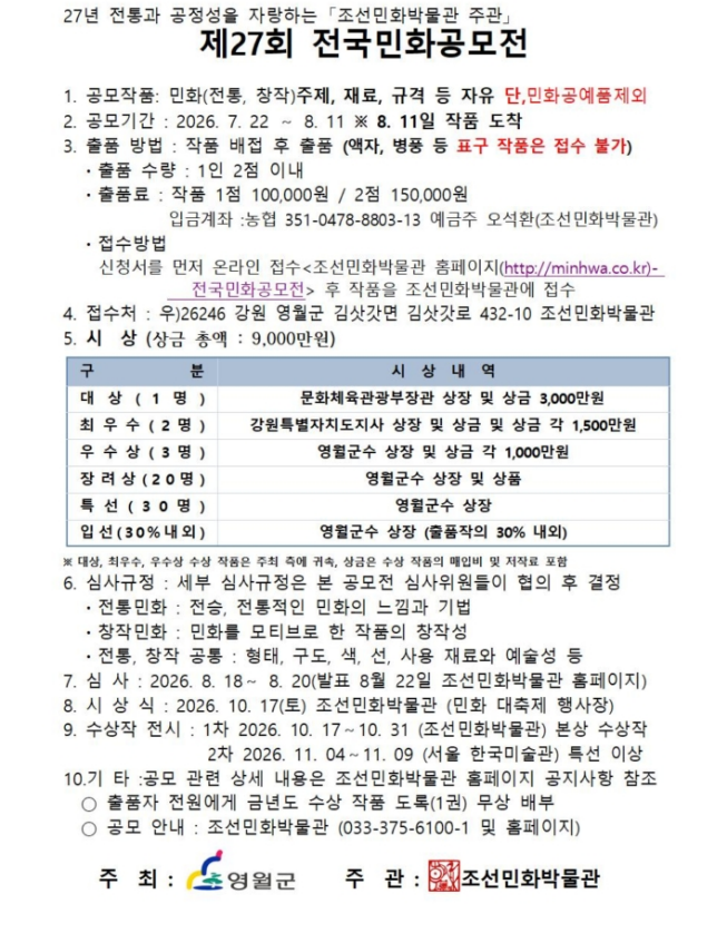 2026년 김삿갓문화제기념 전국민화공모전(총 상금 9,000만원) 공모 안내