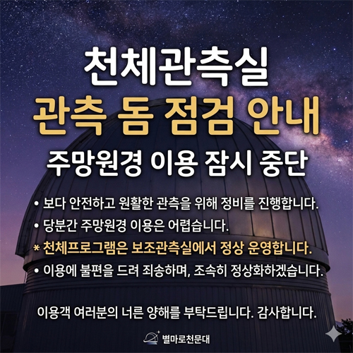 다만, 천체 프로그램은 보조관측실을 통해 정상 운영 합니다.